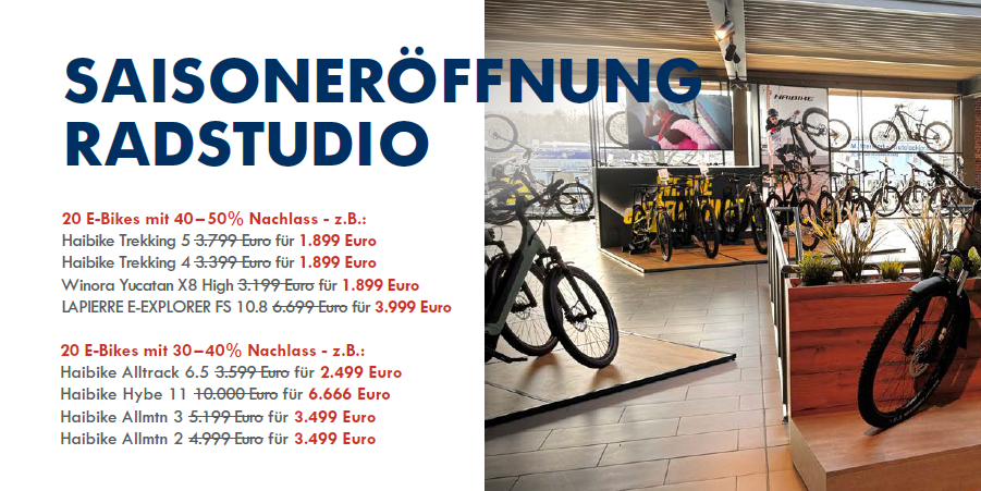 Am 14.03.2026 von 10:00 - 16:00 Uhr eröffnen wir mit unserem Radstudio wieder die Fahrradsaison.